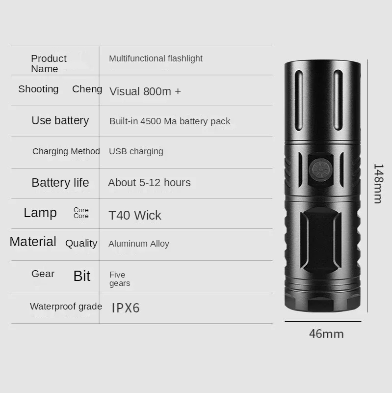 Stay prepared in any situation with the Aluminum Alloy T40 LED Zoom Outdoor Camping Flashlight—your trusted companion for bright and dependable lighting anywhere, anytime.