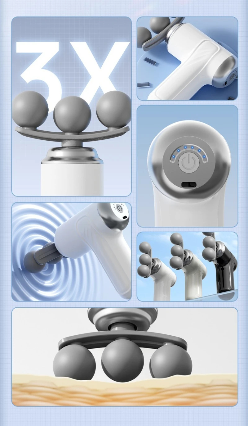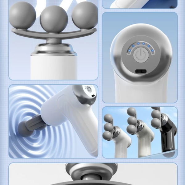 Interchangeable Massage Heads — Includes different attachments (e.g., ball head, fork head, flat head, bullet head) for targeting various muscle groups and therapy types.
